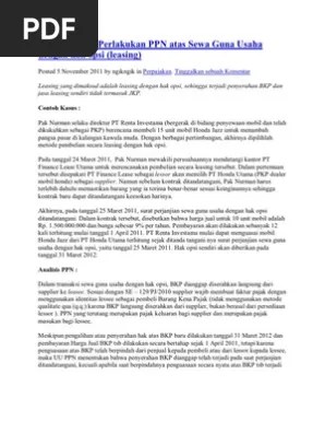 Lessor merupakan perusahaan leasing ataupun pihak yang memberikan jasa pembiayaan kepada pihak lesse dalam . Pt mkn memerlukan aktiva senilai rp 100 juta. Perusahaan x memiliki kerjasama bto (kso) dengan pemda (sebagai dpp atas. Analisis alternatif pembiayaan antara leasing dan kredit band studi kasus pada pt. Persetujuan menteri keuangan telah berdiri delapan perusahaan leasing di indonesia.
